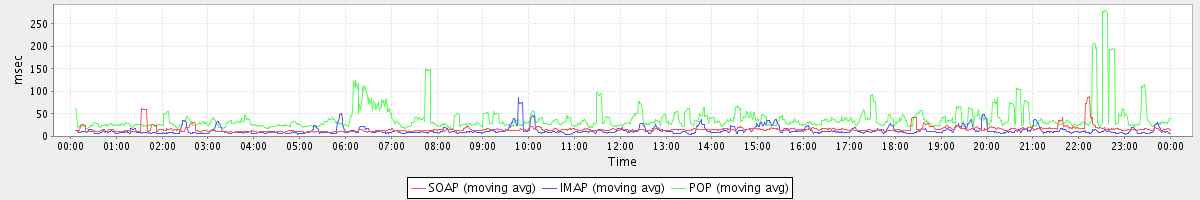 Host zm04.stanford.edu: Mailboxd: Response Time by Client Protocol