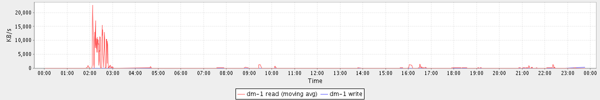 avg(dm-1 read) = 5.70 avg(dm-1 write) = 0.03