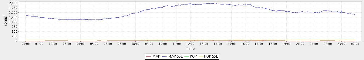 avg(IMAP) = 13.10 avg(IMAP SSL) = 1552.69 avg(POP) = 0.00 avg(POP SSL) = 51.07