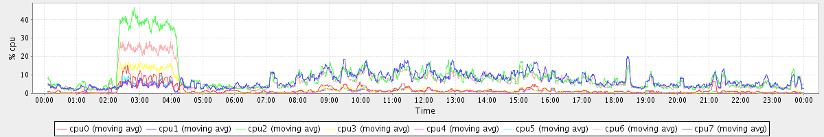 avg(cpu0) = 2.00 avg(cpu1) = 0.36 avg(cpu2) = 0.38 avg(cpu3) = 0.28 avg(cpu4) = 0.20 avg(cpu5) = 0.26 avg(cpu6) = 0.32 avg(cpu7) = 0.26
