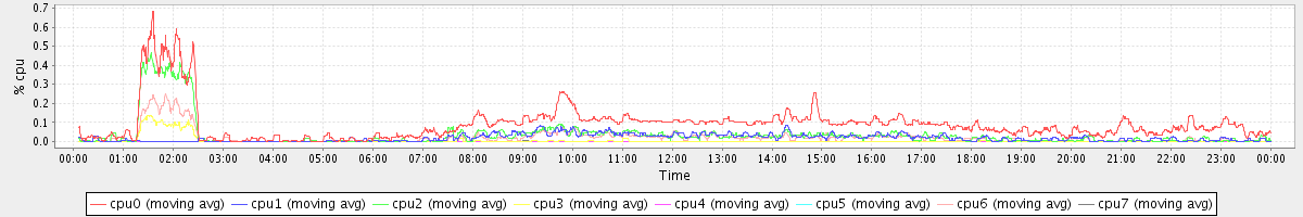 avg(cpu0) = 0.09 avg(cpu1) = 0.02 avg(cpu2) = 0.04 avg(cpu3) = 0.00 avg(cpu4) = 0.00 avg(cpu5) = 0.00 avg(cpu6) = 0.02 avg(cpu7) = 0.00