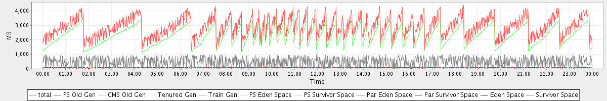 avg(total) = 2886.07 avg(PS Old Gen) = 0.00 avg(CMS Old Gen) = 2300.57 avg(Tenured Gen) = 0.00 avg(Train Gen) = 0.00 avg(PS Eden Space) = 0.00 avg(PS Survivor Space) = 0.00 avg(Par Eden Space) = 495.49 avg(Par Survivor Space) = 90.01 avg(Eden Space) = 0.00 avg(Survivor Space) = 0.00