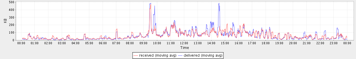 avg(received msgs) = 0.75 avg(delivered msgs) = 0.90 avg(received x rcpts) = 0.97