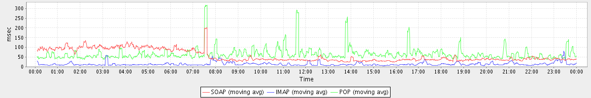 avg(IMAP) = 12.41 avg(IMAP SSL) = 1078.02 avg(POP) = 0.01 avg(POP SSL) = 28.17
