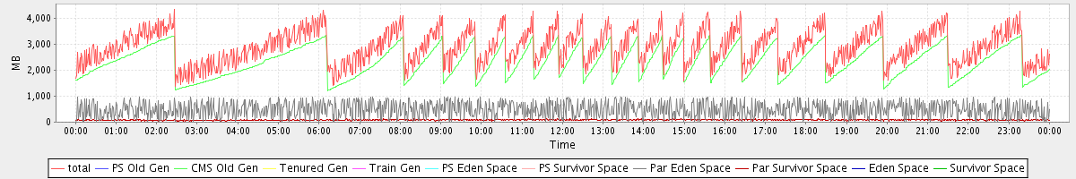 avg(total) = 2888.54 avg(PS Old Gen) = 0.00 avg(CMS Old Gen) = 2317.45 avg(Tenured Gen) = 0.00 avg(Train Gen) = 0.00 avg(PS Eden Space) = 0.00 avg(PS Survivor Space) = 0.00 avg(Par Eden Space) = 487.93 avg(Par Survivor Space) = 83.16 avg(Eden Space) = 0.00 avg(Survivor Space) = 0.00
