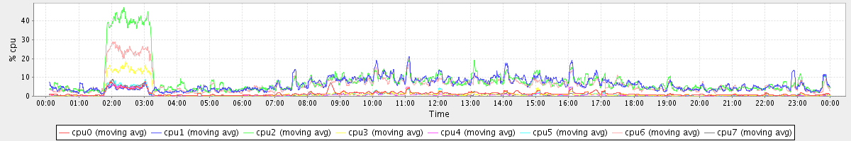 avg(cpu0) = 1.15 avg(cpu1) = 0.23 avg(cpu2) = 0.26 avg(cpu3) = 0.18 avg(cpu4) = 0.12 avg(cpu5) = 0.14 avg(cpu6) = 0.18 avg(cpu7) = 0.13