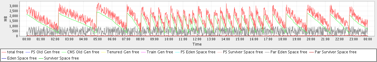 avg(total free) = 1806.33 avg(PS Old Gen free) = 0.00 avg(CMS Old Gen free) = 1297.31 avg(Tenured Gen free) = 0.00 avg(Train Gen free) = 0.00 avg(PS Eden Space free) = 0.00 avg(PS Survivor Space free) = 0.00 avg(Par Eden Space free) = 473.83 avg(Par Survivor Space free) = 35.19 avg(Eden Space free) = 0.00 avg(Survivor Space free) = 0.00