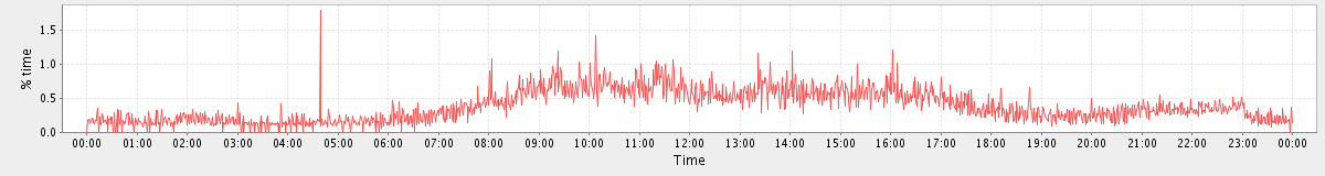 avg(user) = 12.62 avg(sys) = 1.56 avg(idle) = 82.19 avg(iowait) = 3.30 avg(nice) = 0.00 avg(irq) = 0.01 avg(softirq) = 0.31