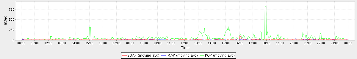 Host zm04.stanford.edu: Mailboxd: Response Time by Client Protocol