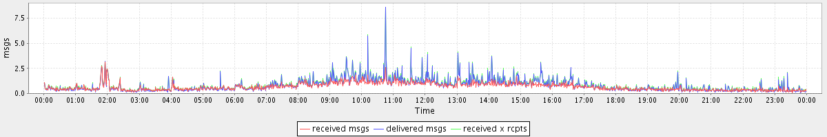avg(received msgs) = 0.67 avg(delivered msgs) = 0.79 avg(received x rcpts) = 0.87
