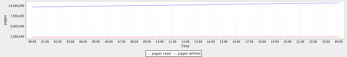 avg(pages read) = 2430195.36 avg(pages written) = 10241760.74