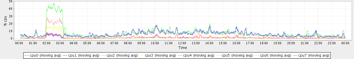 avg(cpu0) = 0.12 avg(cpu1) = 0.03 avg(cpu2) = 0.05 avg(cpu3) = 0.00 avg(cpu4) = 0.00 avg(cpu5) = 0.00 avg(cpu6) = 0.03 avg(cpu7) = 0.00