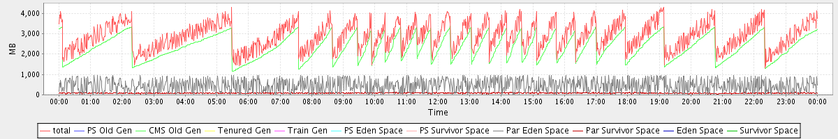 avg(total) = 2878.01 avg(PS Old Gen) = 0.00 avg(CMS Old Gen) = 2333.65 avg(Tenured Gen) = 0.00 avg(Train Gen) = 0.00 avg(PS Eden Space) = 0.00 avg(PS Survivor Space) = 0.00 avg(Par Eden Space) = 460.77 avg(Par Survivor Space) = 83.59 avg(Eden Space) = 0.00 avg(Survivor Space) = 0.00
