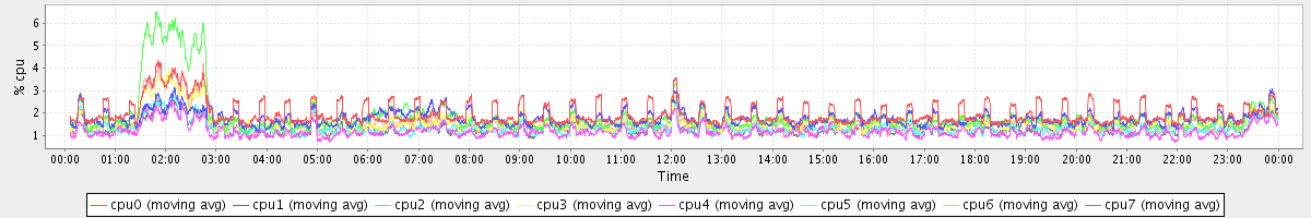 avg(cpu0) = 0.05 avg(cpu1) = 0.01 avg(cpu2) = 0.03 avg(cpu3) = 0.00 avg(cpu4) = 0.00 avg(cpu5) = 0.00 avg(cpu6) = 0.01 avg(cpu7) = 0.00