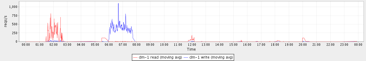 avg(dm-1 read) = 391.68 avg(dm-1 write) = 118.34