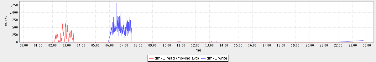 avg(dm-1 read) = 502.90 avg(dm-1 write) = 123.30