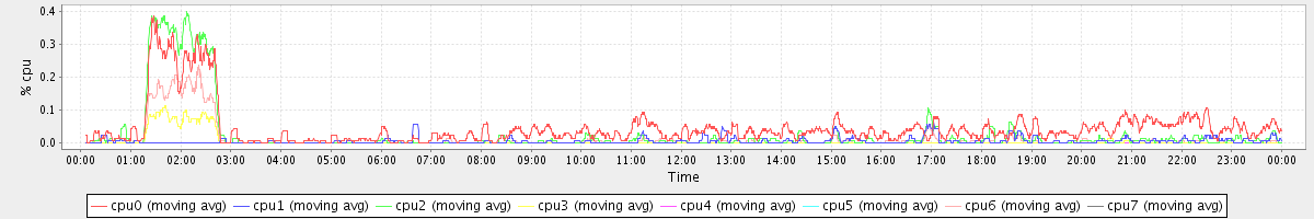 avg(cpu0) = 0.04 avg(cpu1) = 0.01 avg(cpu2) = 0.03 avg(cpu3) = 0.00 avg(cpu4) = 0.00 avg(cpu5) = 0.00 avg(cpu6) = 0.01 avg(cpu7) = 0.00
