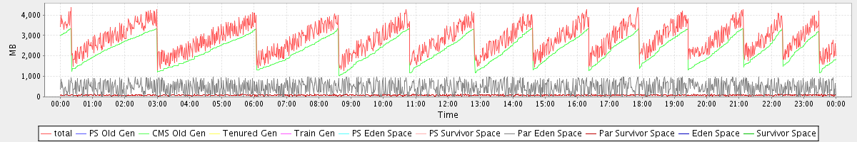 avg(total) = 2843.54 avg(PS Old Gen) = 0.00 avg(CMS Old Gen) = 2278.77 avg(Tenured Gen) = 0.00 avg(Train Gen) = 0.00 avg(PS Eden Space) = 0.00 avg(PS Survivor Space) = 0.00 avg(Par Eden Space) = 481.88 avg(Par Survivor Space) = 82.89 avg(Eden Space) = 0.00 avg(Survivor Space) = 0.00