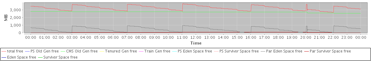 avg(total free) = 3238.95 avg(PS Old Gen free) = 0.00 avg(CMS Old Gen free) = 2711.76 avg(Tenured Gen free) = 0.00 avg(Train Gen free) = 0.00 avg(PS Eden Space free) = 0.00 avg(PS Survivor Space free) = 0.00 avg(Par Eden Space free) = 471.85 avg(Par Survivor Space free) = 55.35 avg(Eden Space free) = 0.00 avg(Survivor Space free) = 0.00