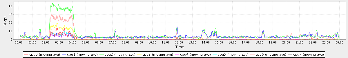 avg(cpu0) = 0.12 avg(cpu1) = 0.01 avg(cpu2) = 0.04 avg(cpu3) = 0.01 avg(cpu4) = 0.00 avg(cpu5) = 0.00 avg(cpu6) = 0.02 avg(cpu7) = 0.00