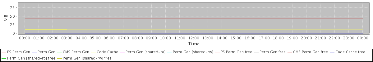 avg(PS Perm Gen) = 0.00 avg(Perm Gen) = 0.00 avg(CMS Perm Gen) = 85.46 avg(Code Cache) = 11.57 avg(Perm Gen [shared-ro]) = 0.00 avg(Perm Gen [shared-rw]) = 0.00 avg(PS Perm Gen free) = 0.00 avg(Perm Gen free) = 0.00 avg(CMS Perm Gen free) = 42.54 avg(Code Cache free) = 0.14 avg(Perm Gen [shared-ro] free) = 0.00 avg(Perm Gen [shared-rw] free) = 0.00