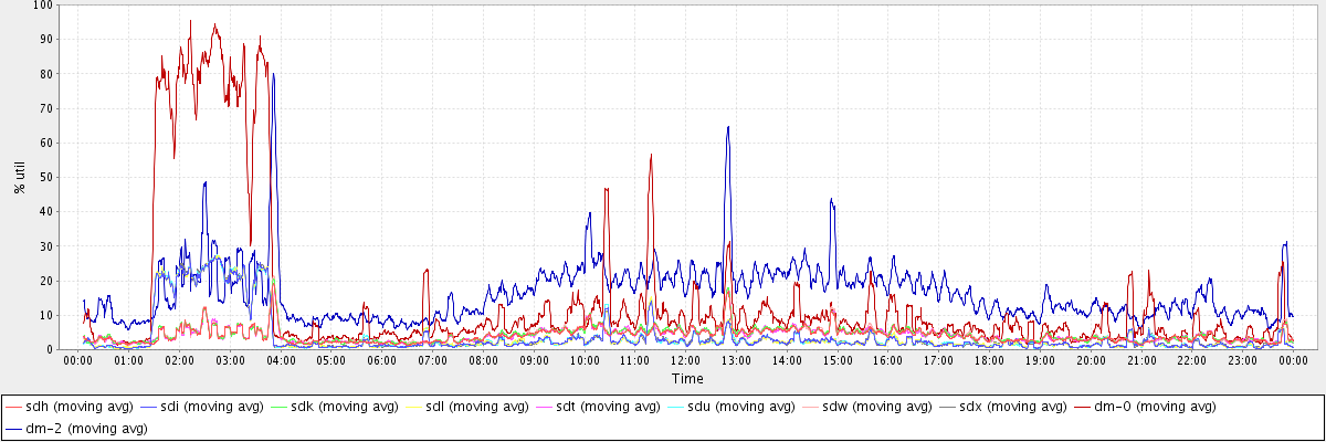 avg(sda read) = 1.14 avg(sda write) = 3.95