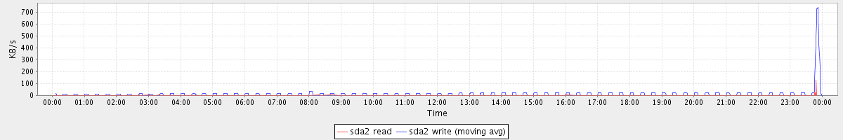 avg(sda2 read) = 0.12 avg(sda2 write) = 9.00