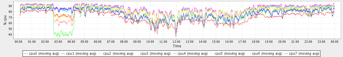 avg(cpu0) = 69.73 avg(cpu1) = 76.26 avg(cpu2) = 73.59 avg(cpu3) = 81.87 avg(cpu4) = 85.38 avg(cpu5) = 83.59 avg(cpu6) = 76.68 avg(cpu7) = 83.98