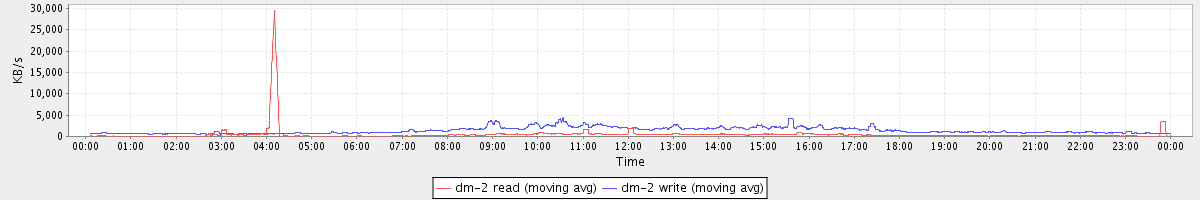 avg(dm-2 read) = 465.96 avg(dm-2 write) = 1379.42