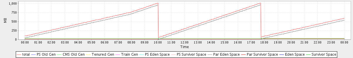 avg(total) = 476.24 avg(PS Old Gen) = 0.00 avg(CMS Old Gen) = 32.35 avg(Tenured Gen) = 0.00 avg(Train Gen) = 0.00 avg(PS Eden Space) = 0.00 avg(PS Survivor Space) = 0.00 avg(Par Eden Space) = 424.17 avg(Par Survivor Space) = 19.72 avg(Eden Space) = 0.00 avg(Survivor Space) = 0.00