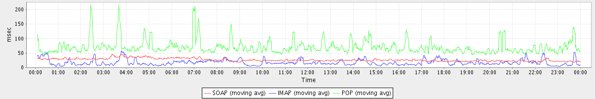 Host zm06.stanford.edu: Mailboxd: Response Time by Client Protocol
