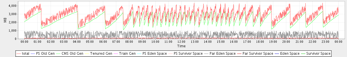 avg(total) = 2921.63 avg(PS Old Gen) = 0.00 avg(CMS Old Gen) = 2337.21 avg(Tenured Gen) = 0.00 avg(Train Gen) = 0.00 avg(PS Eden Space) = 0.00 avg(PS Survivor Space) = 0.00 avg(Par Eden Space) = 497.94 avg(Par Survivor Space) = 86.48 avg(Eden Space) = 0.00 avg(Survivor Space) = 0.00