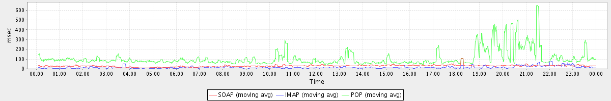Host zm08.stanford.edu: Mailboxd: Response Time by Client Protocol