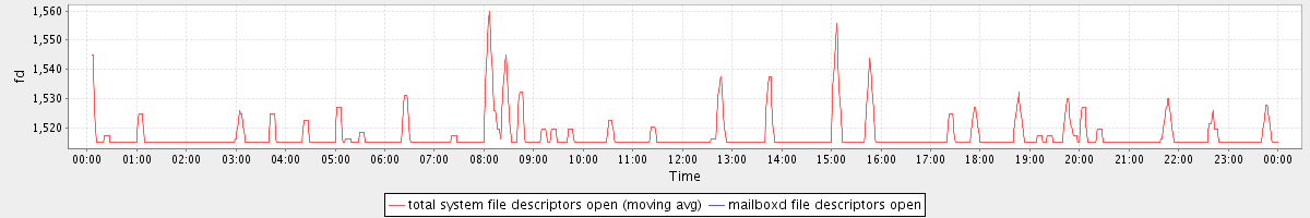 avg(total system file descriptors open) = 1517.26 avg(mailboxd file descriptors open) = 0.00