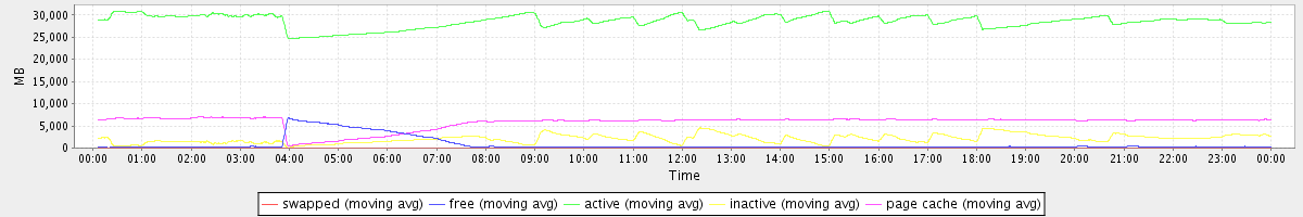 avg(swapped) = 0.25 avg(free) = 793.83 avg(active) = 28578.87 avg(inactive) = 2099.22 avg(page cache) = 5817.94