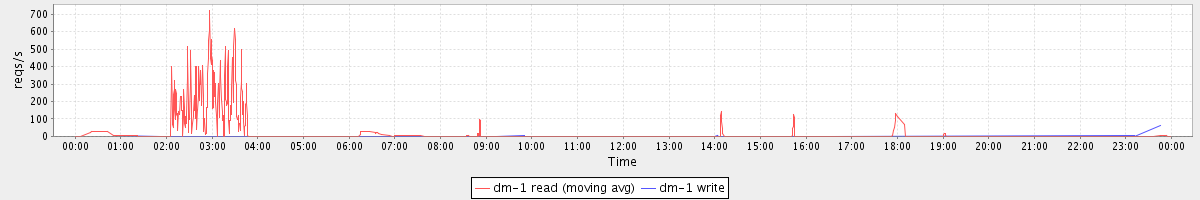 avg(dm-1 read) = 15.74 avg(dm-1 write) = 0.03