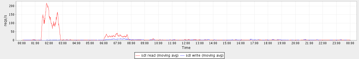 avg(sda read) = 0.77 avg(sda write) = 3.36