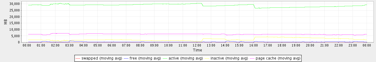 avg(swapped) = 0.25 avg(free) = 332.14 avg(active) = 28855.82 avg(inactive) = 2270.61 avg(page cache) = 6345.42