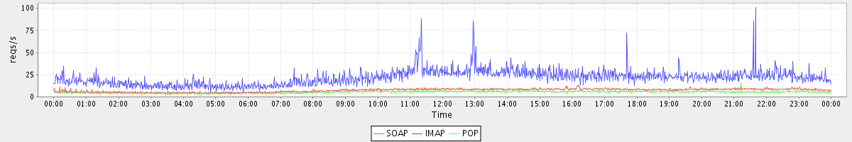 Host zm06.stanford.edu: Mailboxd: Request Rate by Client Protocol