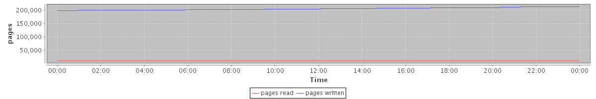 avg(pages read) = 10764.00 avg(pages written) = 205209.61