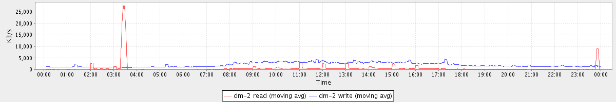 avg(dm-2 read) = 624.13 avg(dm-2 write) = 2050.02