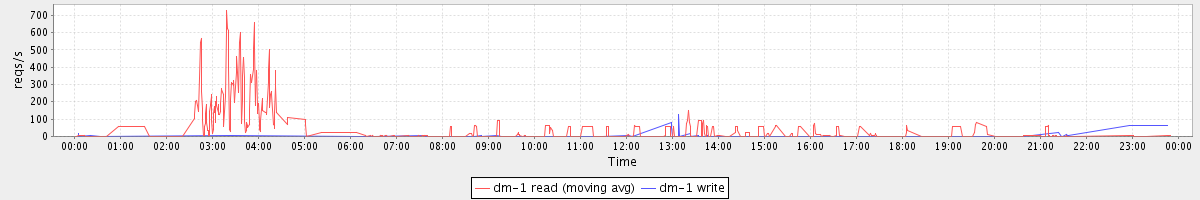 avg(dm-1 read) = 462.40 avg(dm-1 write) = 0.87