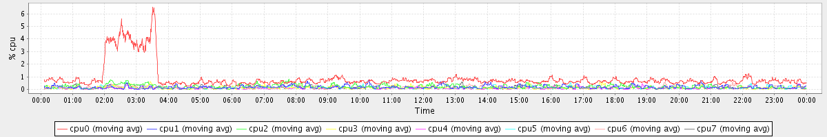 avg(cpu0) = 0.06 avg(cpu1) = 0.01 avg(cpu2) = 0.04 avg(cpu3) = 0.01 avg(cpu4) = 0.00 avg(cpu5) = 0.00 avg(cpu6) = 0.02 avg(cpu7) = 0.00