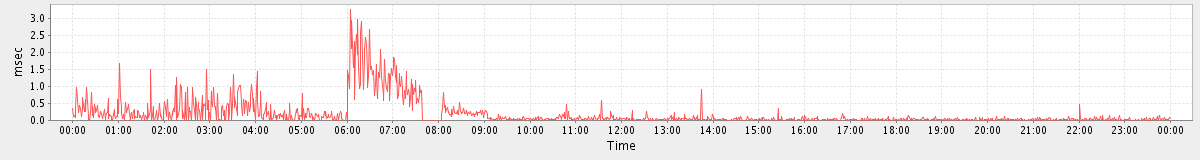 avg(AutoCompleteRequest) = 459.25 avg(SendMsgRequest) = 210.82 avg(SearchGalRequest) = 147.67 avg(BackupQueryRequest) = 166.80 avg(GetFreeBusyRequest) = 209.95 avg(FolderActionRequest.empty) = 535.75 avg(BackupRequest) = 4338.50 avg(SearchCalendarResourcesRequest) = 134.17 avg(GetQuotaUsageRequest) = 1042.00 avg(AddMsgRequest) = 153.57