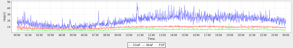 Host zm06.stanford.edu: Mailboxd: Request Rate by Client Protocol