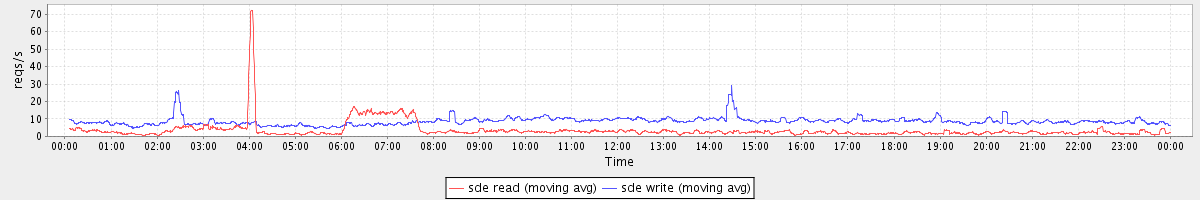 avg(sda read) = 0.73 avg(sda write) = 3.43
