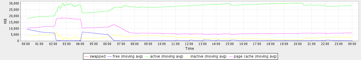 avg(swapped) = 0.00 avg(free) = 1461.16 avg(active) = 27206.52 avg(inactive) = 2702.81 avg(page cache) = 8048.03