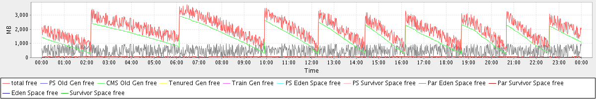 avg(total free) = 1984.90 avg(PS Old Gen free) = 0.00 avg(CMS Old Gen free) = 1444.92 avg(Tenured Gen free) = 0.00 avg(Train Gen free) = 0.00 avg(PS Eden Space free) = 0.00 avg(PS Survivor Space free) = 0.00 avg(Par Eden Space free) = 482.28 avg(Par Survivor Space free) = 57.70 avg(Eden Space free) = 0.00 avg(Survivor Space free) = 0.00