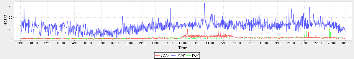 Host zm03.stanford.edu: Mailboxd: Request Rate by Client Protocol