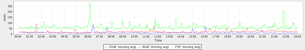 Host zm03.stanford.edu: Mailboxd: Response Time by Client Protocol